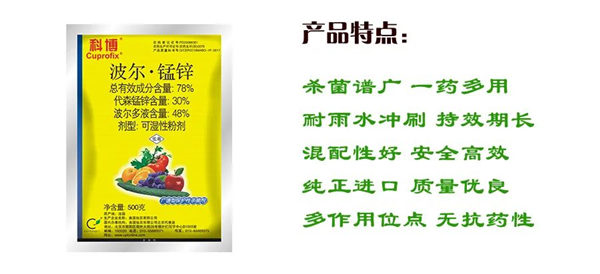 科博屬于多位點藥劑,病菌對其不易產(chǎn)生抗性,在整個生長期及可以連續(xù)多次使用,不用擔(dān)心其抗藥性問題。