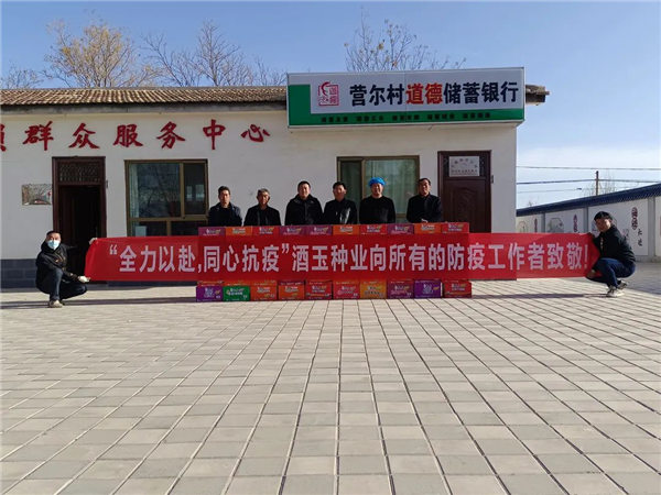 3月26日,酒玉種業(yè)生產(chǎn)部員工在公司領(lǐng)導(dǎo)的帶領(lǐng)下,向肅州區(qū)上壩鎮(zhèn)營爾村、小溝村捐贈抗疫物資;并向全國各地奮戰(zhàn)在抗疫一線的廣大醫(yī)務(wù)工作者、黨員干部、群眾致以崇高的敬意。!