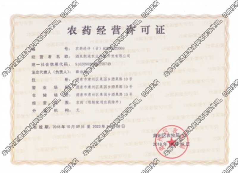 凱地農(nóng)業(yè)農(nóng)藥經(jīng)營許可證