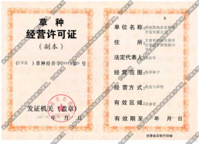 凱地農(nóng)業(yè)草種子經(jīng)營許可證