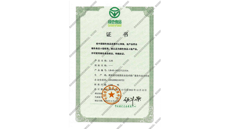 綠色食品證書(shū)_玉米