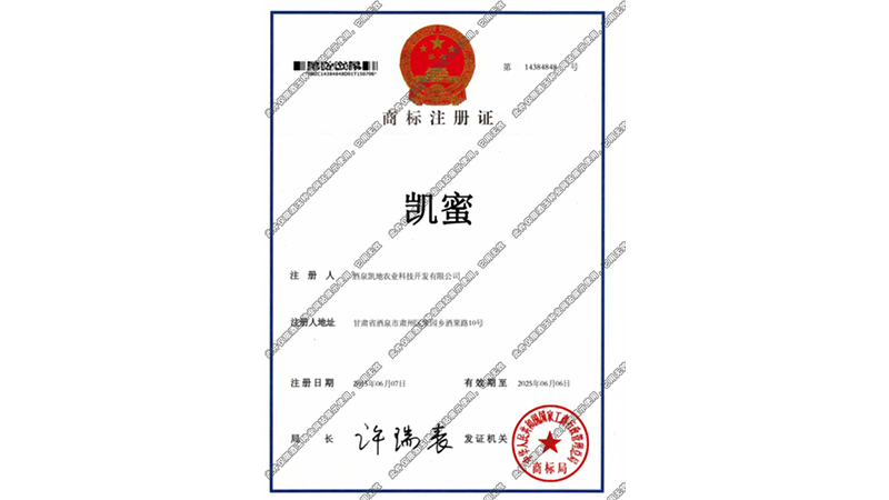 凱蜜商標(biāo)注冊(cè)證書(shū)