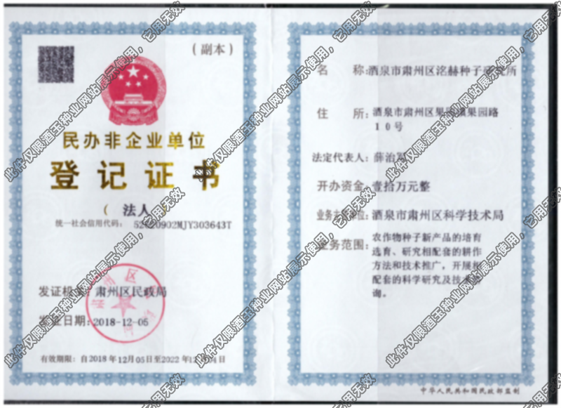 洺赫種子研究所登記證書(shū)